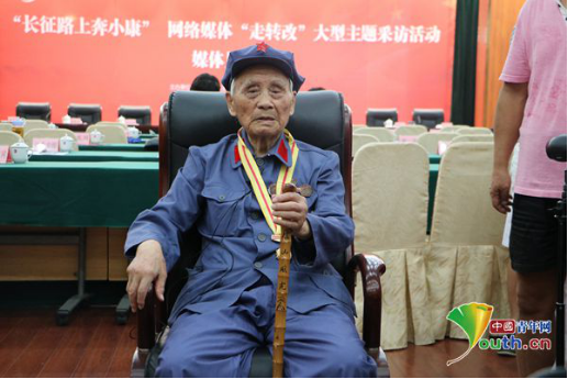 百歲老紅軍王承登為記者講述長征故事。中國青年網記者李川 攝