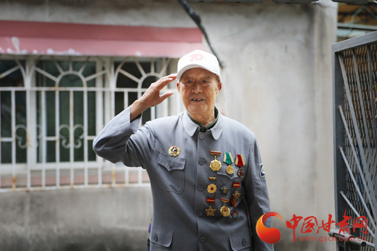 敬禮的余新元老人身后就是他生活的院子 張文良 攝