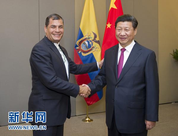 2014年7月16日,國家主席習近平在巴西利亞會見厄瓜多爾總統科雷亞。新華社記者謝環馳攝