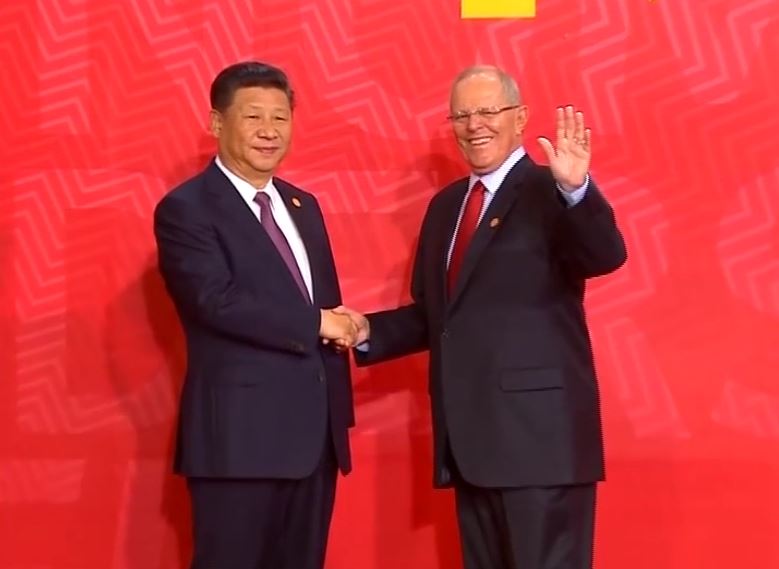 習近平同其他與會領導人依次抵達,受到秘魯總統庫琴斯基的熱情迎接。
