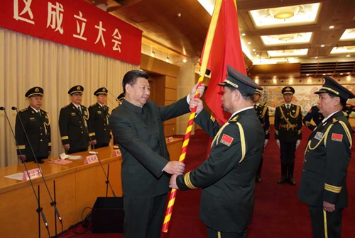 2016年2月1日,中國人民解放軍戰區成立大會在北京八一大樓隆重舉行。習近平向東部戰區、南部戰區、西部戰區、北部戰區、中部戰區授予軍旗并發布訓令。