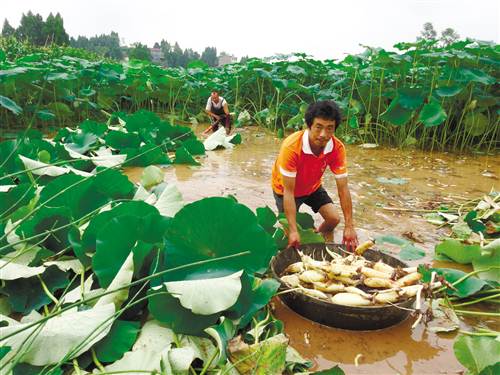 如今,倪純兵已成為當?shù)厣徟悍N植的帶頭人。10多戶農(nóng)戶跟隨他的步伐,共種植蓮藕200余畝。