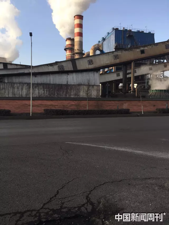 在7號廠區(qū)的紅色院墻內(nèi),一棟三層樓高的生產(chǎn)車間緊挨著馬路,像壘起的集裝箱,銀白色的墻皮已經(jīng)老舊,蒙上黑色的粉塵。機(jī)器轟鳴震耳,卻只能看到幾個黑洞洞的窗戶。車間樓下緊貼院墻處,四個巨大的罐體冒著白色的蒸汽,冷卻的水滴如同小雨,斜斜地拍到路人的臉上,即使在15米寬的馬路對面都無法避免。