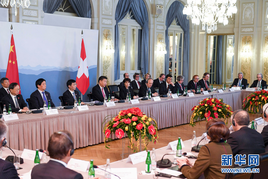 1月16日,國家主席習近平在伯爾尼同瑞士聯邦主席洛伊特哈德共同會見瑞士經濟界代表。 新華社記者 李學仁 攝