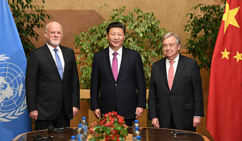 習近平會見第71屆聯合國大會主席湯姆森和聯合國秘書長古特雷斯