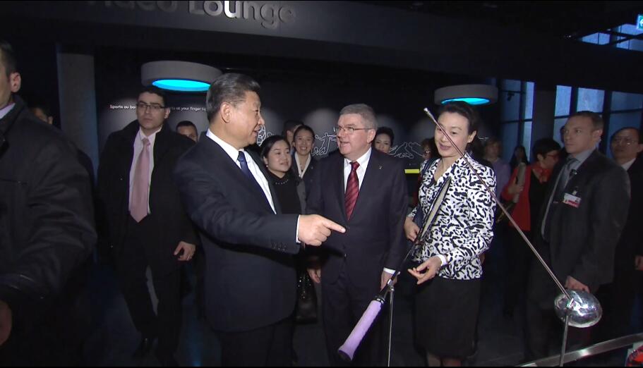 習近平和彭麗媛在巴赫主席夫婦陪同下,參觀國際奧林匹克博物館