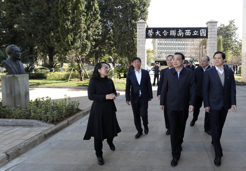 【李克強:你們要將西南聯大精神發揚光大】李克強24日來到位于云南師大的西南聯大舊址。寒假仍留校的學生們聞訊趕來。總理說,你們現在的教學條件比當年好得多。當年是“物質上得不了,精神上了不得”。希望你們在這里汲取前輩們的精神養分,傳承剛毅堅卓的文化品格,將西南聯大的精神發揚光大。