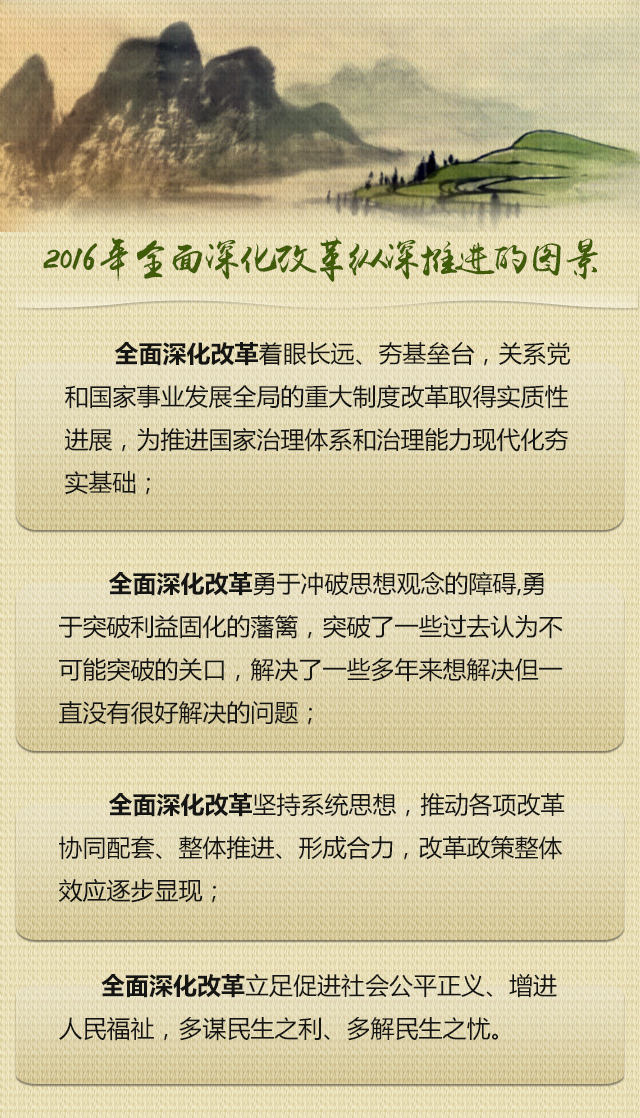 2016年,全面深化改革攻堅(jiān)期和深水區(qū)特點(diǎn)更加明顯,改革協(xié)調(diào)推進(jìn)難度繼續(xù)加大,改革落地生根任務(wù)愈發(fā)艱巨。