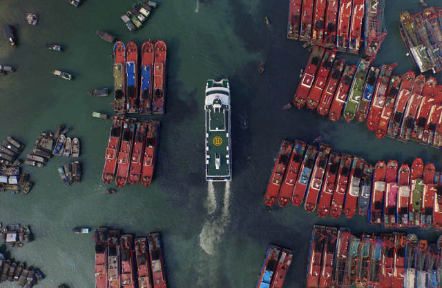 輪船駛出廣西北海國(guó)際客運(yùn)港(2016年5月18日攝)。新華社記者 張愛(ài)林 攝