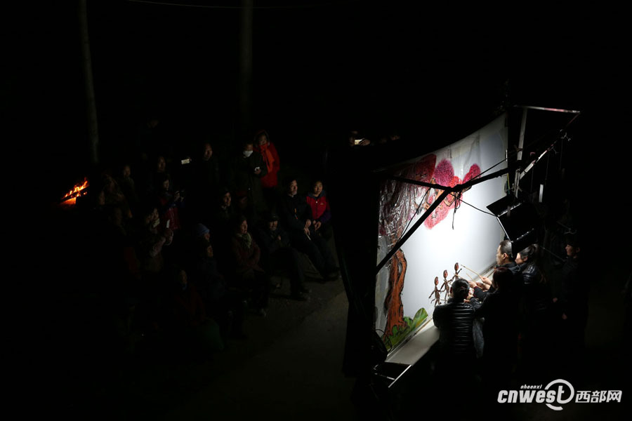 西部網(wǎng)訊(記者 魏永賢)渭南市華州區(qū)櫻桃溝村,夜幕降臨,村里的老鄉(xiāng)們匯聚到皮影戲臺(tái)前觀看皮影戲,冬夜室外寒冷,老鄉(xiāng)們的身后生起了火御寒。“你看,喜兒的芭蕾跳得多好呀,比真人都好。”一名年輕的媳婦興奮地說(shuō)。