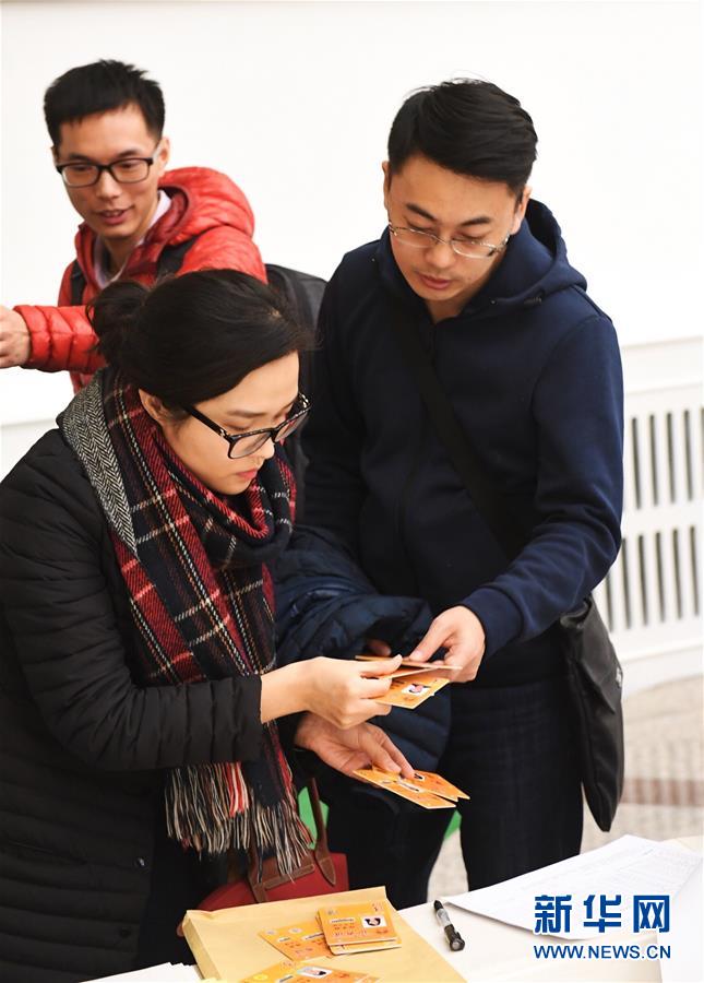 3月1日,在北京人民大會堂澳門廳,參加十二屆全國人大五次會議采訪報道的記者領取證件。 新華社記者趙穎全攝