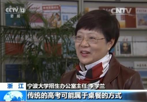 寧波大學(xué)招生辦公室主任 李學(xué)蘭:傳統(tǒng)的高考可能屬于桌餐的方式,大家到時(shí)間就排排坐坐下來(lái)吃什么菜就給你上什么菜,那么現(xiàn)在浙江方式呢就有點(diǎn)像自助餐的方式,來(lái)了之后哪些菜你自己選擇量你自己選擇,所以整個(gè)這個(gè)浙江省的改革的方案是給學(xué)生提供了非常大余地的選擇的一個(gè)機(jī)會(huì)和權(quán)利,也充分的在制度上予以保障那么反過(guò)來(lái)說(shuō)呢對(duì)我們高校來(lái)說(shuō)也賦予更多的自主權(quán)。