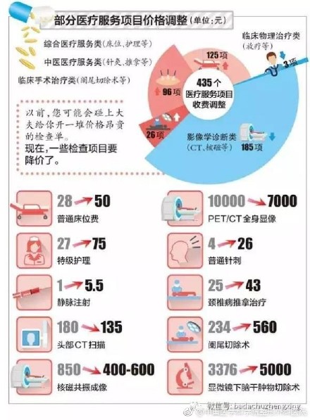 ②435項(xiàng)醫(yī)療服務(wù)項(xiàng)目?jī)r(jià)格隨之調(diào)整,其中CT、核磁等大型檢查設(shè)備收費(fèi)大幅下降。