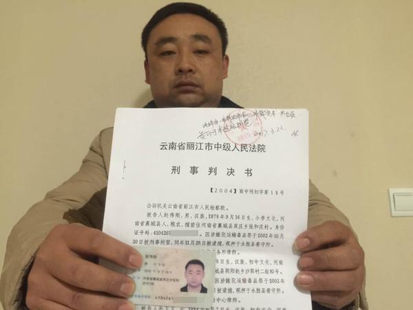 趙偉剛遭遇的麻煩,源于麗江市永勝縣公安局在2003年破獲的一起運(yùn)輸毒品案。一名河南籍男子指使兩名女子,以體內(nèi)藏毒的方式,將601.6克海洛因從云南瑞麗市運(yùn)輸至四川攀枝花市,途經(jīng)云南麗江永勝縣時(shí),被公安機(jī)關(guān)抓獲。
