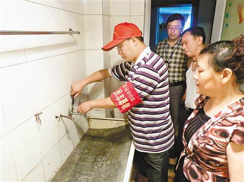 社區(qū)黨員志愿者正在為居民修理水管。