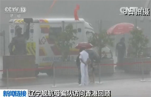 香港市民有機(jī)會登上遼寧艦航母編隊(duì)的3艘屬艦濟(jì)南艦、銀川艦和煙臺艦參觀,一睹屬艦風(fēng)采。即便是暴雨連綿,也擋不住市民的熱情。8日,記者在昂船洲軍營捕捉到了感人的畫面,傾盆暴雨中,多位市民自發(fā)為執(zhí)勤戰(zhàn)士遮風(fēng)擋雨,這一幕感染了更多前來參觀的市民,也溫暖了現(xiàn)場執(zhí)勤官兵的心。