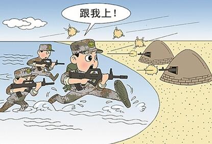“沖啊!”作為先鋒班的排頭兵,我躍出海面,向著海岸邊的模擬暗堡沖去。