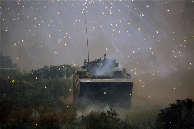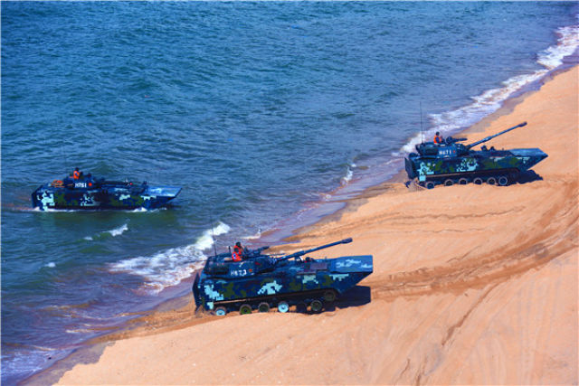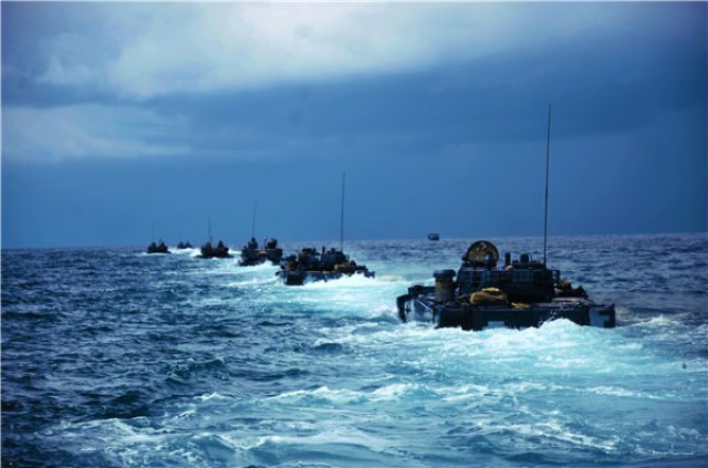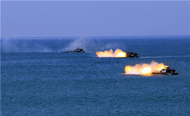 兩棲突擊車海上排進(jìn)攻戰(zhàn)斗射擊。
