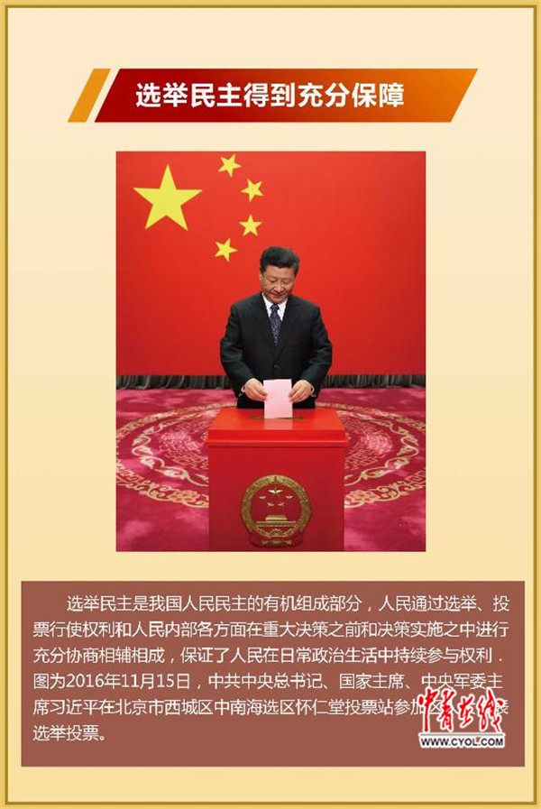 展區(qū)內(nèi),一張2016年11月15日,中共中央總書記、國家主席、中央軍委主席習近平在北京市西城區(qū)中南海選區(qū)懷仁堂投票站參加區(qū)人大代表選舉投票的照片吸引了王玉(化名)的目光。今年剛剛參加工作的王玉在大學時曾參加過一次人大代表的選舉投票,“那是我第一次參加人大代表的選舉投票,當時感覺十分神圣,今天看到總書記和我們一樣行使著自己的投票權(quán),十分親切!”