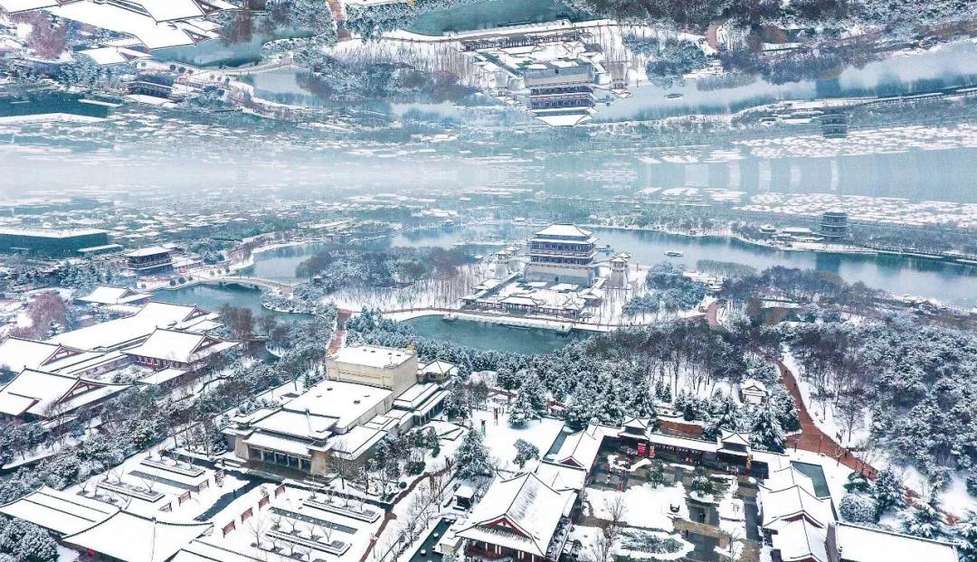 2017年1月4日,西安。一場強降雪,古城西安到處銀裝素裹。攝影師采用數(shù)碼后期技術(shù),將拍攝的照片整合、制作了一組“西安折疊”景象。