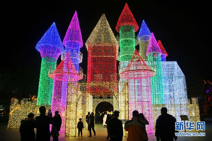 2月25日晚,游客在江蘇省常州市春秋淹城觀賞花燈。元宵節將至,江蘇省常州市春秋淹城百組花燈絢麗璀璨,眾多游客來此賞燈觀景,喜迎佳節。 新華社發(陳暐 攝)