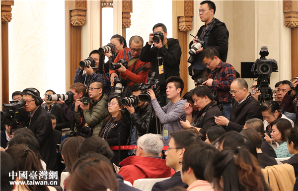 3月2日下午,全國政協(xié)十三屆一次會議新聞發(fā)布會在人民大會堂一層新聞發(fā)布廳舉行。圖為媒體記者提問。(中國臺灣網(wǎng) 吳曉寒 攝)