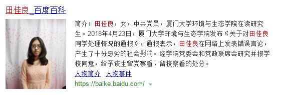 出了這樣的人,廈門大學也必須做出相應處分。但是我覺得矛頭不需要指到廈門大學身上,因為吸收這種人入黨幾乎是全國高校都在做錯的事。田佳良被扒出來的“光輝事跡”中,很多都是在遼寧老家干出來的,三觀也是在東北形成的。不是地域黑,但是在東北讀過書的都知道當地高校官僚氣息多么嚴重,我對田同學論文嚴重抄襲卻依然被保送到廈大的事并不感到奇怪。廈大這次算是躺槍,政審不是廈大做的,也不知道會招進這樣的貨色。但是廈大理虧在只是將田佳良留黨察看,處罰太輕,高校學生黨員都知道這個決定意味著什么,只要在接下來的半年到兩年的時間里,田佳良乖乖閉嘴好好使用微博,她就能繼續做科研被保送,最終取消對她的黨內處分。