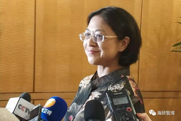 圖為盧麗安會長接受采訪。(圖片來源:“海研智庫”微信公眾號)
