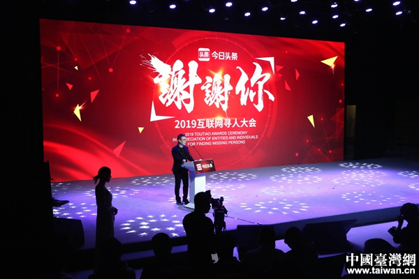 中國(guó)臺(tái)灣網(wǎng)1月18日北京訊 (記者 尹賽楠)1月17日,今日頭條“謝謝你”2019互聯(lián)網(wǎng)尋人大會(huì)在北京舉行。中國(guó)公安部刑偵局副局長(zhǎng)陳士渠、中國(guó)民政部社會(huì)事務(wù)司副司長(zhǎng)劉濤、中國(guó)移動(dòng)集團(tuán)發(fā)展戰(zhàn)略部處長(zhǎng)文雪蓮、中國(guó)移動(dòng)集團(tuán)新聞中心處長(zhǎng)付宇光、字節(jié)跳動(dòng)副總裁張羽、今日頭條副總編輯徐一龍等嘉賓出席了活動(dòng)。