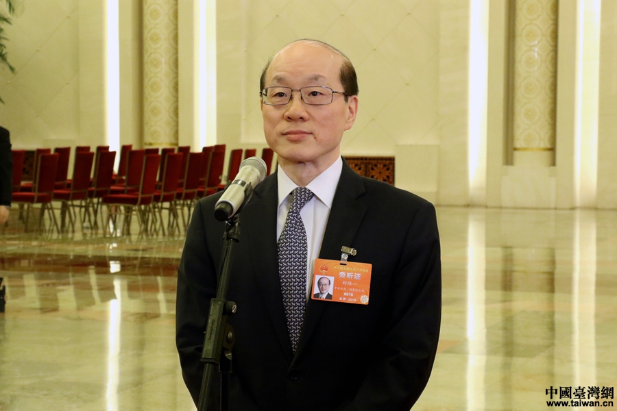 中共中央臺辦、國務院臺辦主任劉結一在“部長通道”接受采訪。(中國臺灣網 尹賽楠 攝)