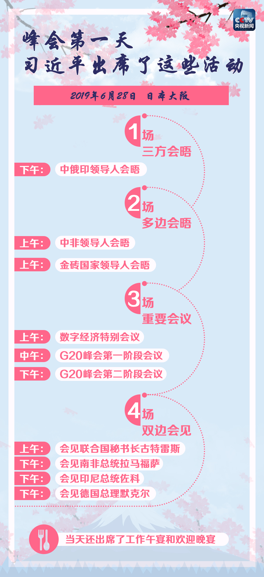 6月29日是G20大阪峰會的最后一天。習近平主席將繼續出席G20大阪峰會后續階段的會議,并同多國領導人舉行雙邊會見,其中與美國總統特朗普的會晤也將于當天舉行。請繼續關注《時政新聞眼》。