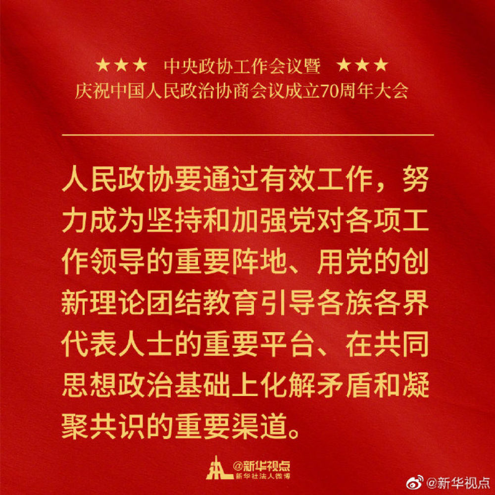 金句來了!習(xí)近平在中央政協(xié)工作會議暨慶祝中國人民政治協(xié)商會議成立70周年大會上的講話金句!