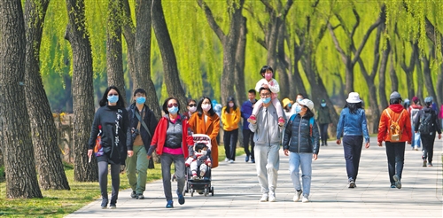 4月5日,北京頤和園公園,游客結伴踏青,放飛心情。清明假日,北京市公園管理部門推出網絡預約購票、快速檢測體溫、實施限流管控等多項舉措,全面加強市屬公園限流管控。經濟日報記者 趙晶攝