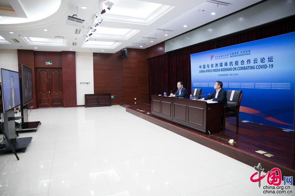守望相助,共克時艱”中國與非洲媒體抗疫合作云論壇主會場。中國網記者 董寧 攝影