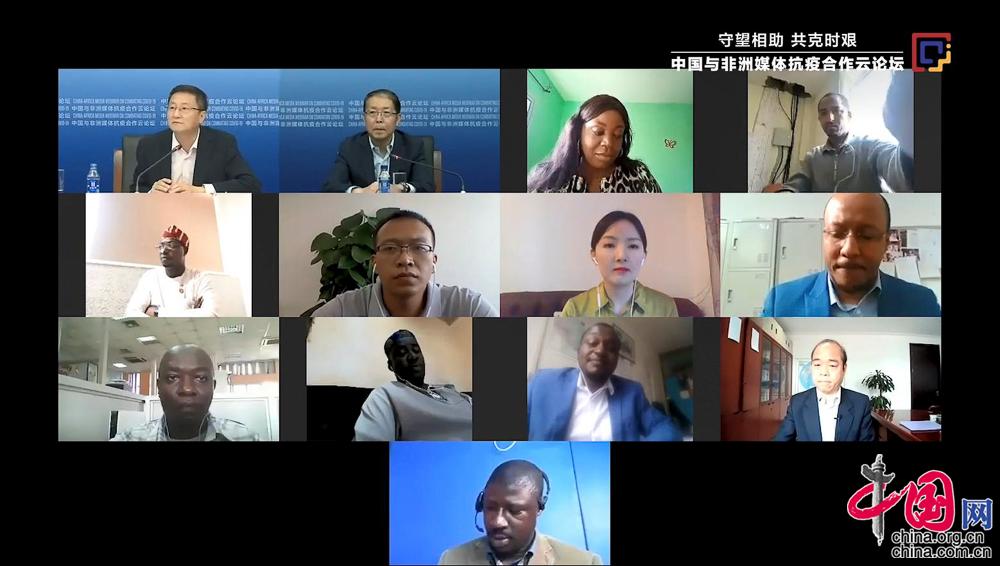 來自中國與非洲9國的12位新聞官員與資深媒體人士相聚云端,圍繞“加強中非國際傳播合作,凝聚全球抗疫媒體正能量”這一主題分享經驗、匯聚智慧。視頻截圖
