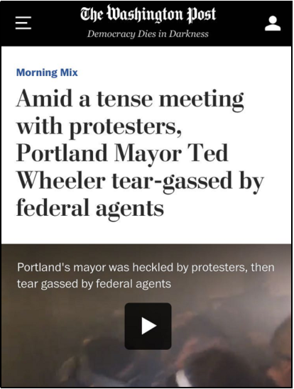 △《華盛頓郵報》指出,在抗議活動重鎮(zhèn)波特蘭市,市長也遭到了催淚瓦斯的襲擊