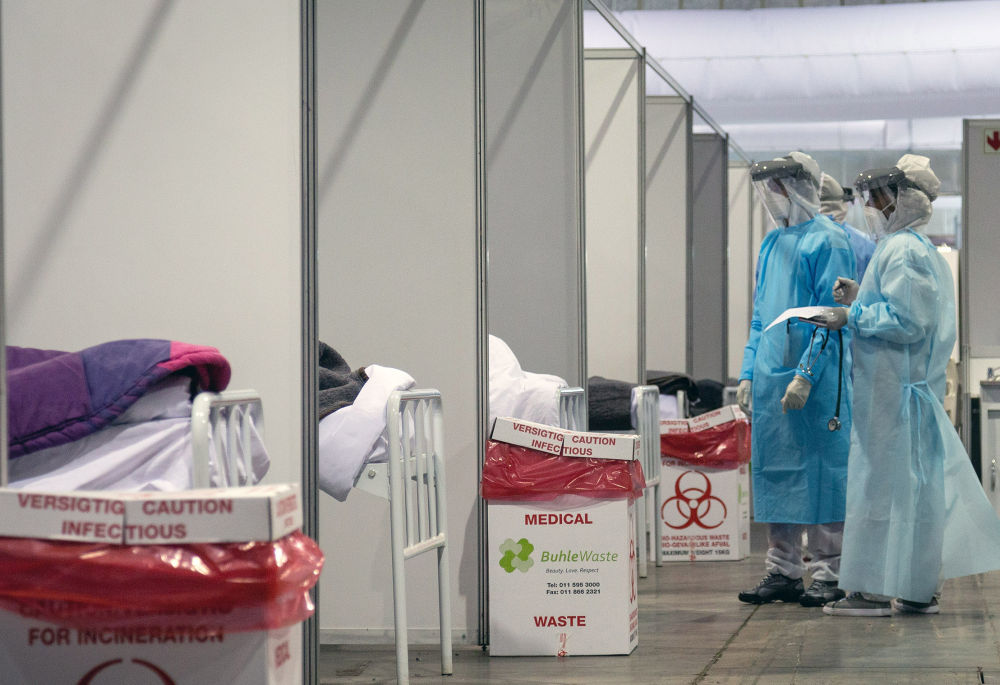 7月3日,醫護人員在南非約翰內斯堡隔離中心內詢問病情。新華社發(耶希爾攝)