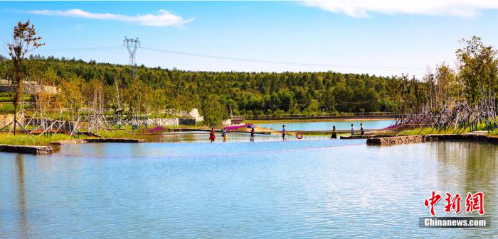 烏蘭浩特市天駿山,藍(lán)天白云倒映湖面,四周格桑花海迎風(fēng)搖曳。誰也想不到,多年前這里竟是一個(gè)連雜草都沒多少的廢棄采石場。