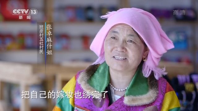 班彥村五社村民 張卓麻什姐:那時候15歲慢慢繡,16歲的時候自己的嫁妝也繡完。19歲出嫁,準備了四五年。