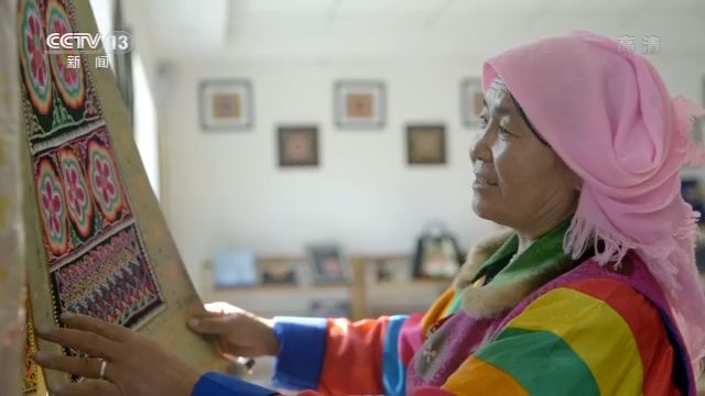班彥村五社村民 張卓麻什姐:2017年3月金盤繡公司他們來了,(到)我們家來了,他說你們有沒有你們做的什么盤繡?他看了我們的盤繡以后,才給我們下的訂單,才知道我們的盤繡這么強。去年的話,我們這些繡娘們過來這邊做的話,一天20塊的補助。現在的這些老人們住在山上的時候,一毛錢都沒賺的。現在老人們就掙了一萬多(一年)。