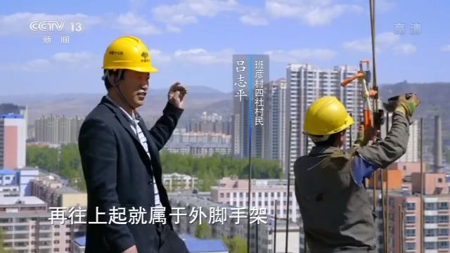 班彥村四社村民 呂志平:我承包的是外腳手架,主要負責安全這一塊。我踩的這個工字鋼,現在它是外腳手架的底部,這個挑起來,然后從這個上面立了鋼管,再往上起就屬于外腳手架。