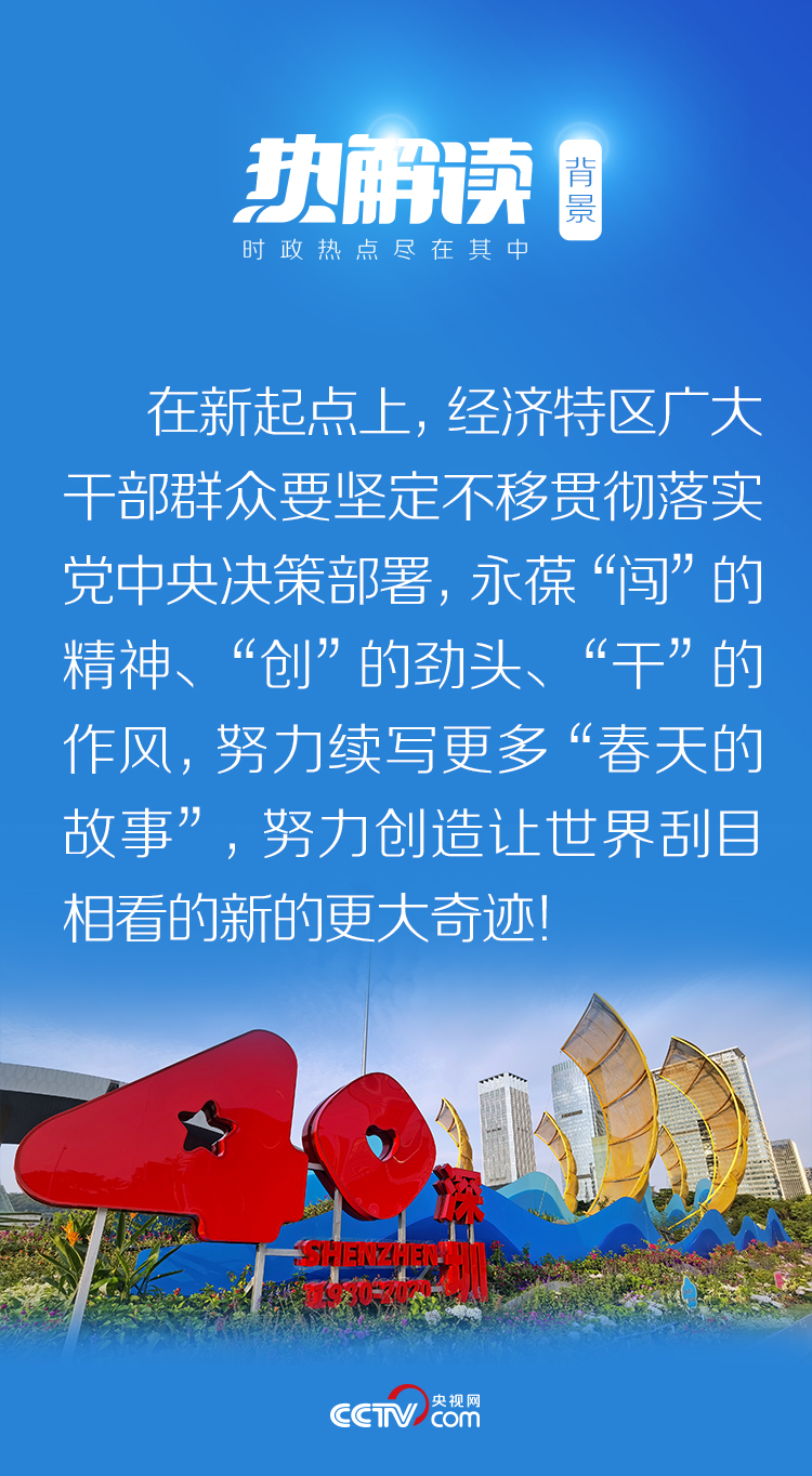 對于經濟特區干部群眾如何續寫更多“春天的故事”,總書記給出三個字——“闖”“創”“干”。這三個字也正契合了敢闖敢試、敢為人先、埋頭苦干的特區精神。