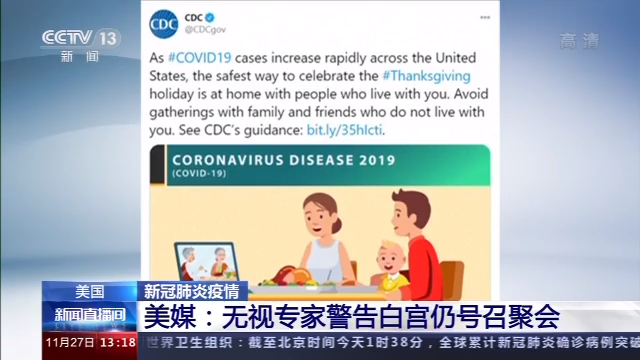 美國新冠肺炎疫情惡化趨勢不減,近來差不多每6天就會新增100萬確診病例。美國公共衛(wèi)生專家預測,隨著美國度過傳統(tǒng)假日,美國疫情還會加速惡化,單日新增死亡病例將“很快”翻番,達到4000例。他們多次呼吁民眾避免外出,避免聚集。而美國白宮方面日前卻仍號召民眾在公共假期與親人聚會。這引發(fā)美國媒體批評。
