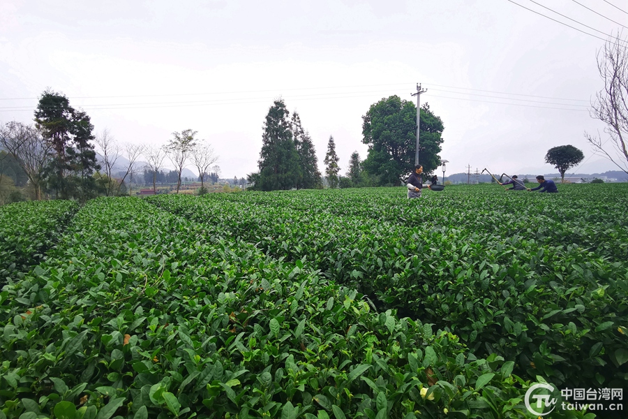 茶田里,當地村民正在采摘茶葉。(中國臺灣網 尹賽楠 攝)