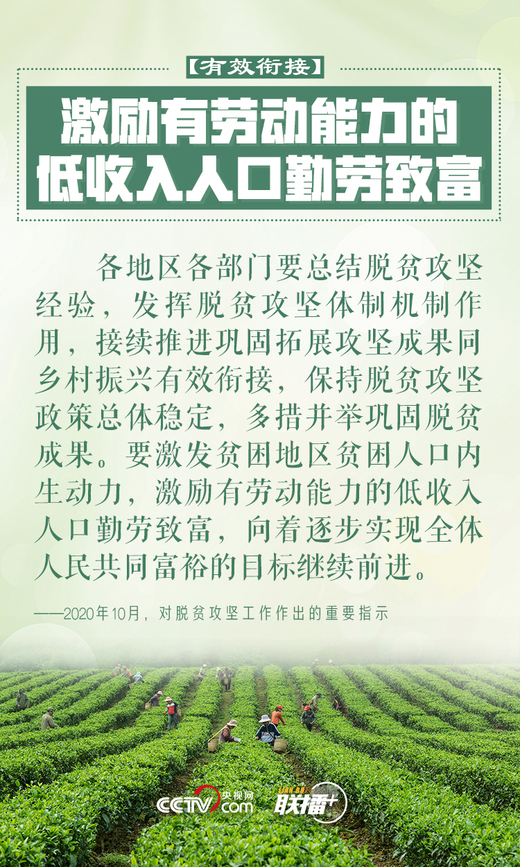 聯(lián)播+日前召開的中央經(jīng)濟(jì)工作會(huì)議提出,要鞏固拓展脫貧攻堅(jiān)成果,堅(jiān)決防止發(fā)生規(guī)模性返貧現(xiàn)象。要做好同鄉(xiāng)村振興的有效銜接,幫扶政策保持總體穩(wěn)定,分類調(diào)整優(yōu)化,留足政策過渡期。