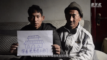 “明年愿望是帶著我爸去北京看天安門!毙《≌f完,父子倆對著笑開了。