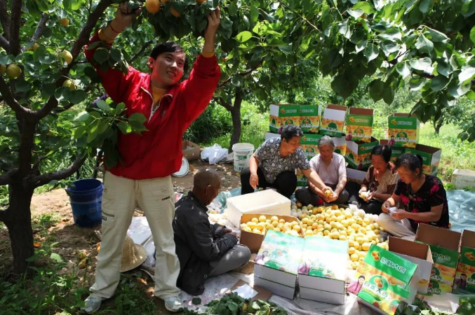 白水大杏成為繁峙縣脫貧致富的好產業。圖為果農正在采摘包裝大杏。喬偉攝
