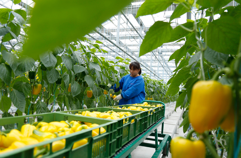 △2020年12月11日,在河北省邢臺市南和區(qū)賈宋鎮(zhèn),農(nóng)民在采摘彩椒。