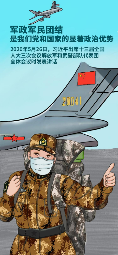 擁軍優(yōu)屬、擁政愛民是中國共產(chǎn)黨領導下我國軍民的偉大創(chuàng)造,是我黨我軍的優(yōu)良傳統(tǒng)和顯著政治優(yōu)勢。2020年,全軍部隊忠實踐行人民軍隊根本宗旨,在抗擊新冠肺炎疫情、防汛救災等重大行動中聽黨指揮、聞令而動、勇挑重擔,積極發(fā)揮突擊隊作用,為決勝全面建成小康社會、決戰(zhàn)脫貧攻堅作出了重要貢獻。