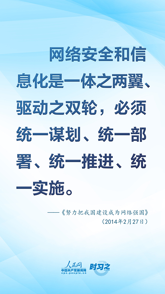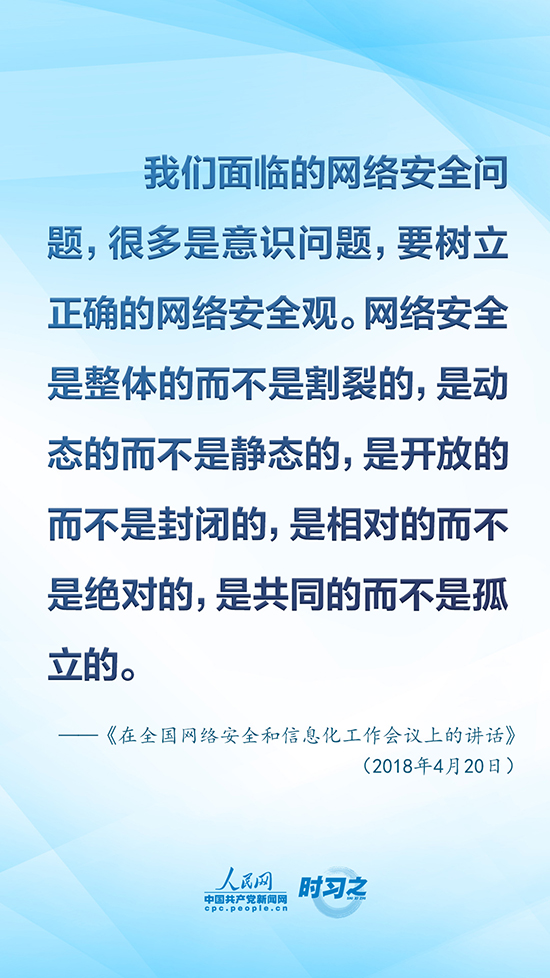 黨的十八大以來,以習近平同志為核心的黨中央從進行具有許多新的歷史特點的偉大斗爭出發(fā),重視互聯網、發(fā)展互聯網、治理互聯網,統(tǒng)籌協(xié)調涉及政治、經濟、文化、社會、軍事等領域網絡安全和信息化重大問題,作出一系列重大決策、實施一系列重大舉措,推動我國網信事業(yè)取得歷史性成就,走出一條中國特色治網之道。人民網·中國共產黨新聞網“時習之”欄目擷取了《習近平關于網絡強國論述摘編》中有關“維護國家網絡安全”的10句金句,以饗讀者。